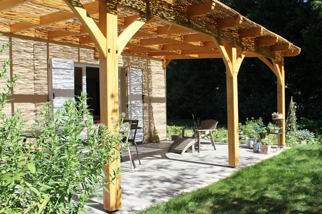 APRES : une terrasse carrelée très confortable et une pergola en bois couvrant l’ensemble de la terrasse, ce qui permet de profiter d’un bel espace, et donne à la terrasse un côté plus cosy.