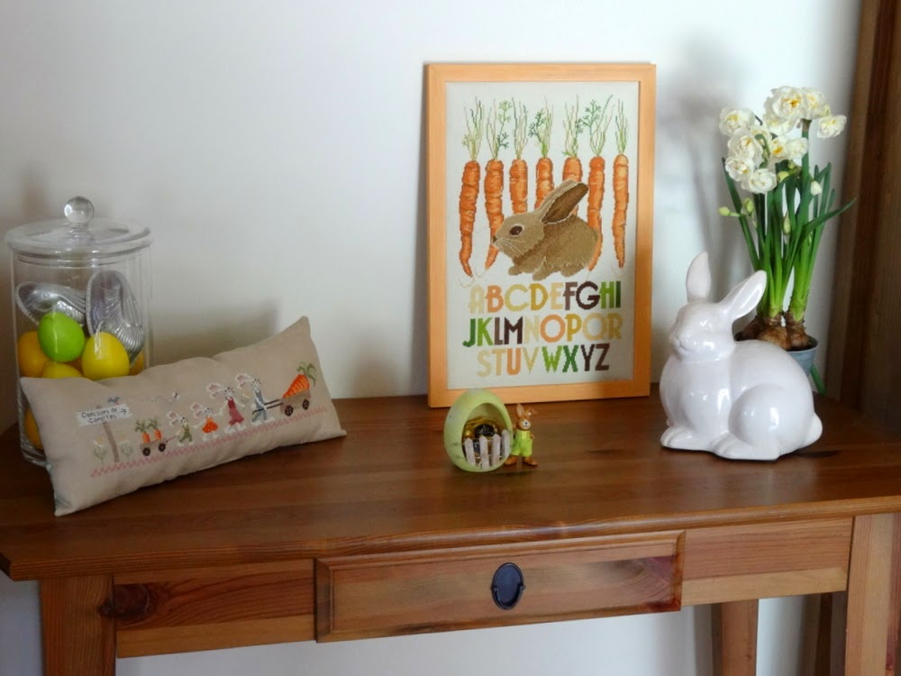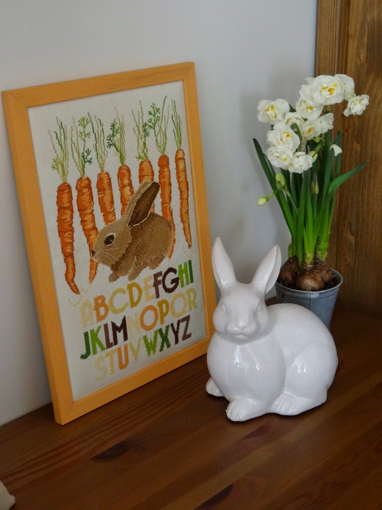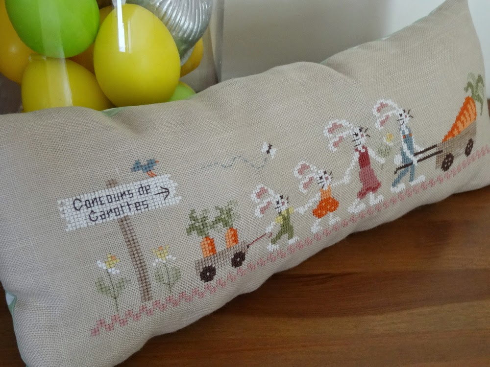 Edit du 8 avril : j’ai oublié d’indiquer la référence du modèle de point de croix de la première photo. Il s’agit du concours de carottes, de Jardin Privé.
