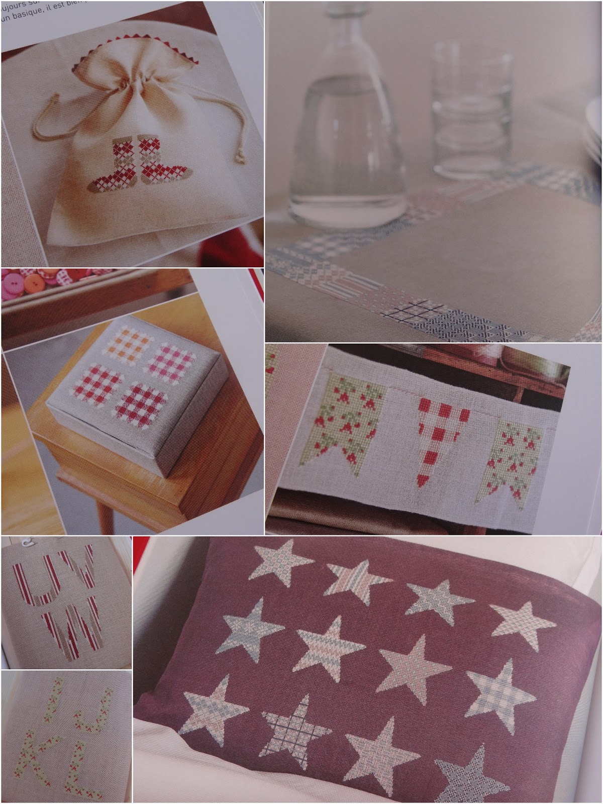 Je viens de m’offrir le nouveau livre de Monique Lyonnet, Grandes lettres au point de croix, qui fait suite à ABC textiles, trompe-l’oeil au point de croix. Les chiffres et lettres font environ 65 points de haut, et sont accompagnés de motifs variés (étoiles, fanions, carrés de tissus). Beaucoup de jolies choses et d’idées pour de futurs ouvrages. La suite en images.
