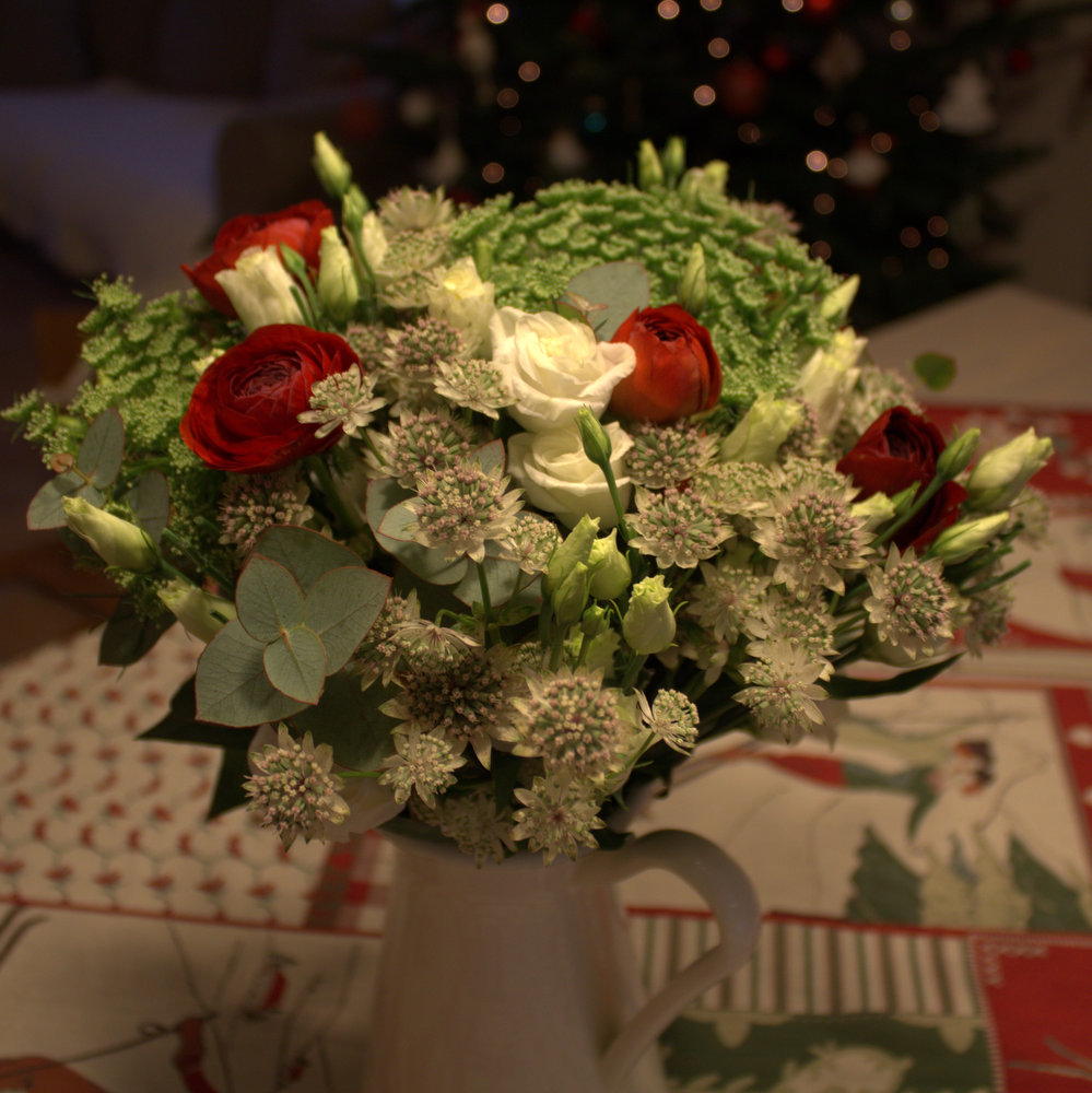 Je me suis fait un petit plaisir pour Noël, avec ce beau bouquet commandé chez Bergamotte Paris. Je l’ai reçu ce midi et je l’ai déjà photographié sous toutes les coutures ! J’en suis très contente car il s’accorde à merveille avec le reste de la déco. Qu’en pensez-vous ? Connaissez-vous ce fleuriste ?
