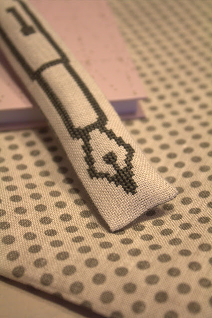 En ce dernier jour de l’année, je voulais vous montrer un dernier petit ouvrage, offert il y a quelques jours à une amie pour son anniversaire. J’ai brodé un étui à stylo pour accompagner un carnet (trouvé chez Sostrene Grene) et un pochon cousu dans un tissu en lin à pois gris de ma réserve.