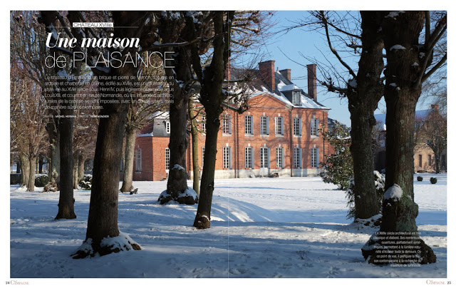 Le nouveau magazine Style Campagne, dont le numéro 2 est paru début décembre, nous emmène en Normandie pour admirer le beau château d’Emalleville sous une fine couche de neige.