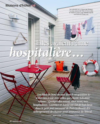 Et pour finir, retrouvons le magazine Maisons à Vivre qui nous offre un joli reportage sur les maisons d’hôtes des Filles du Bord de Mer, qu’on ne présente plus. On y trouvera également une jolie sélection de chambres d’hôtes au bord de l’eau.