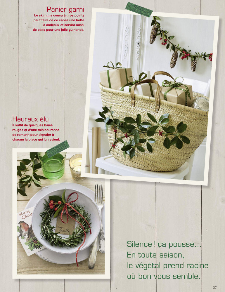 - Des idées pour un Noël végétal dans Marie-Claire Idées. J’aime l’idée du panier pour y déposer les petits paquets.