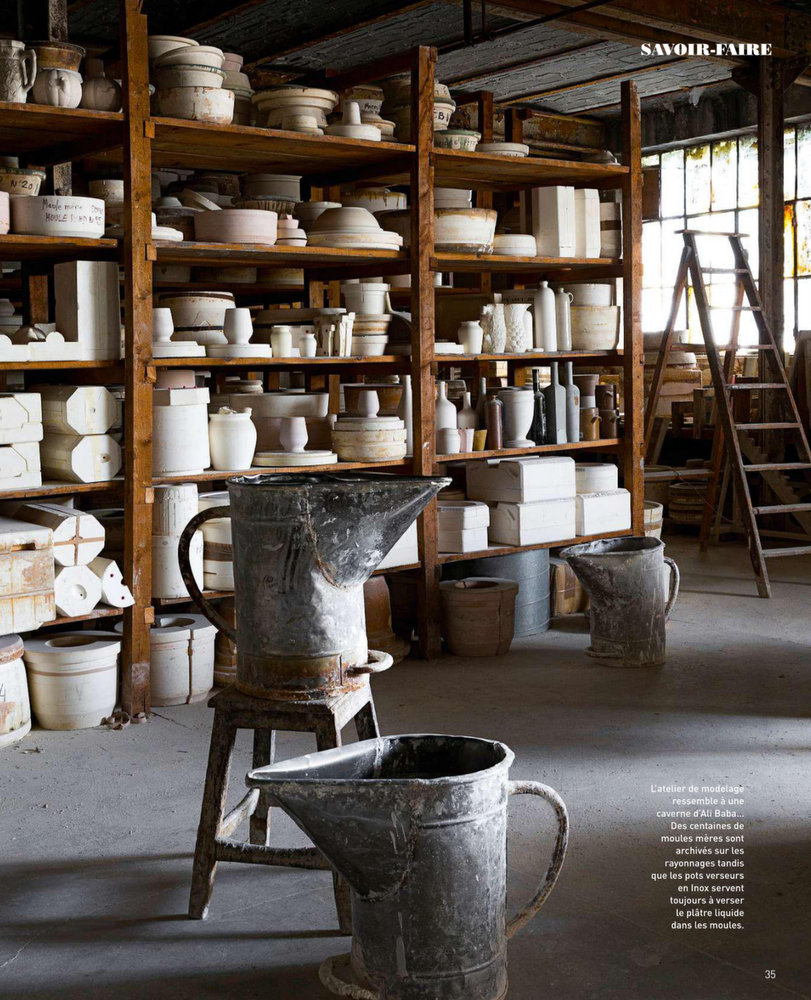Me revoilà avec la revue de presse déco du mois de janvier. Feuilletons tout d’abord Art & Décoration qui nous propose un reportage sur la Manufacture de Digoin, qui a repris son activité en 2014. Fondée en 1875, cette manufacture spécialisée dans les poteries culinaires avait fermé en 2002.