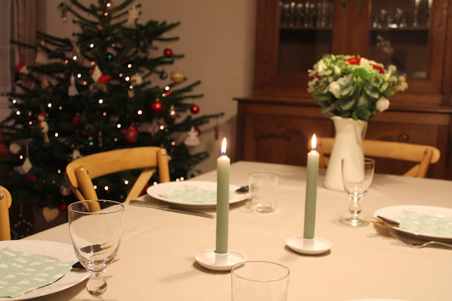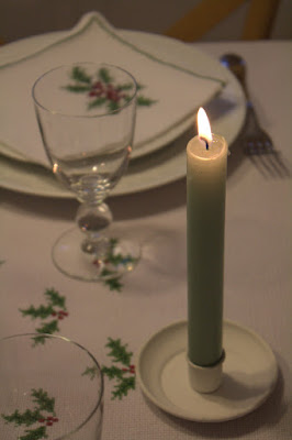 Une jolie table tout en douceur, et cette nappe aux houx s'y prête merveilleusement ! bravo